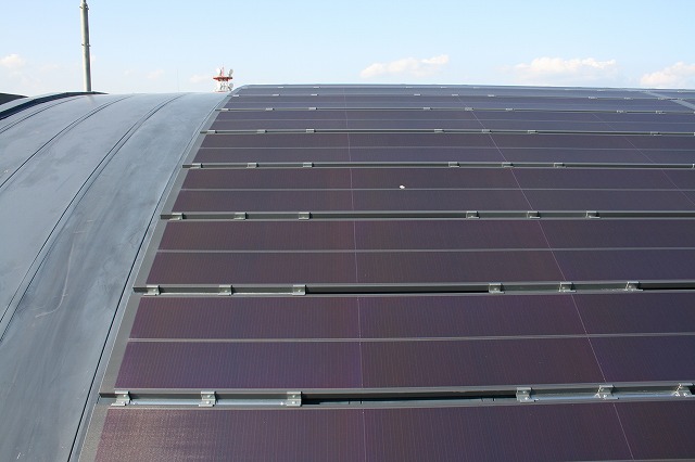 当社は、建築屋根工事業にて培ったノウハウを活かし、工場・倉庫・公共施設・学校・体育館・ショッピングセンターなど、強度上の問題から太陽電池設置が難しい施設に、太陽電池を設置することができる超軽量の太陽光発電システムを開発し、販売を開始しました。