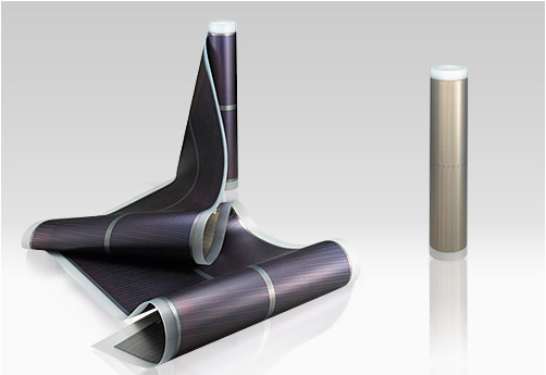 本システムで使用する太陽電池は、プラスチックフィルムを基板に用いたフィルム型アモルファス太陽電池を使用します。